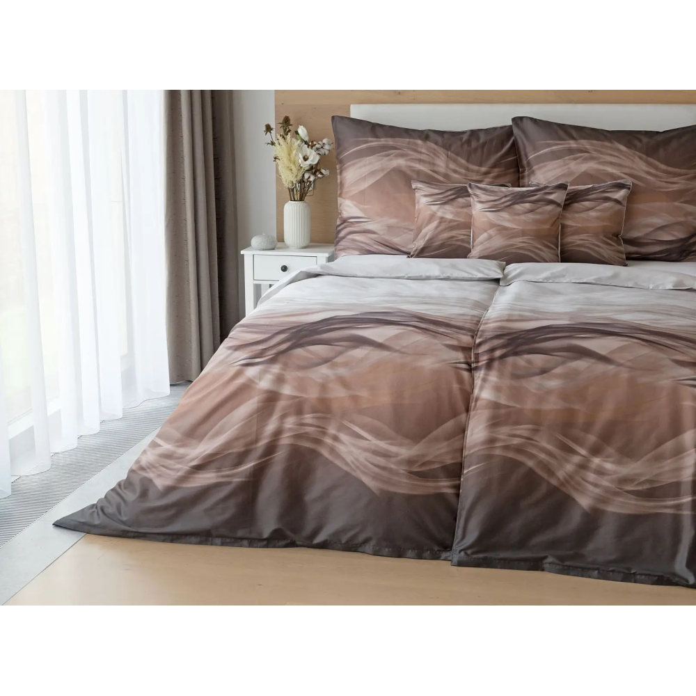 Nechte se unášet na vlnách hřejivé harmonie s ložním povlečením Marni Brown. Abstraktní motiv kombinuje oblíbenou paletu přírodních béžových a hnědých tónů, které navodí v ložnici útulnou atmosféru. Eleganci podtrhuje jemný lesk bavlněného saténu, který je pro tento vzor jako stvořený.