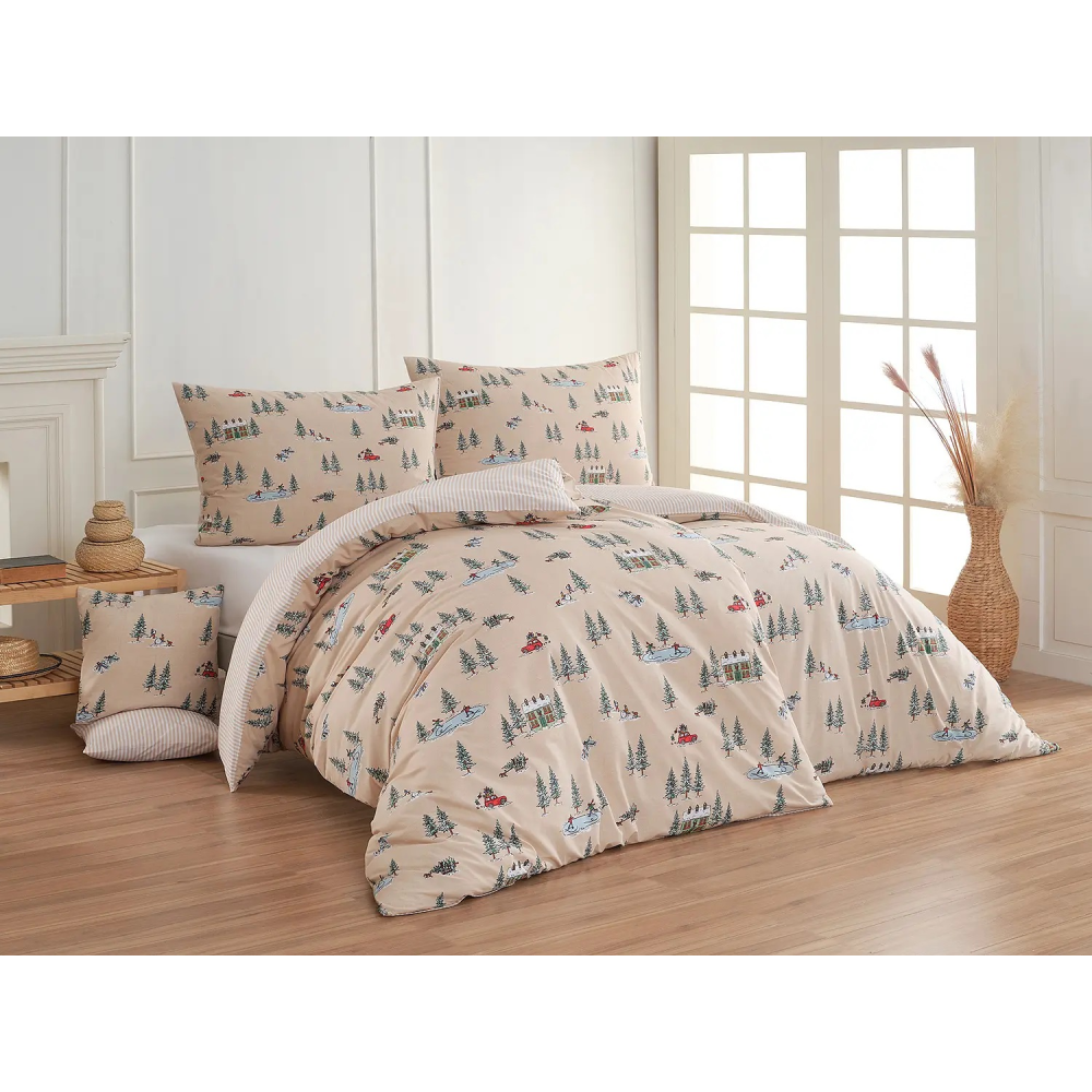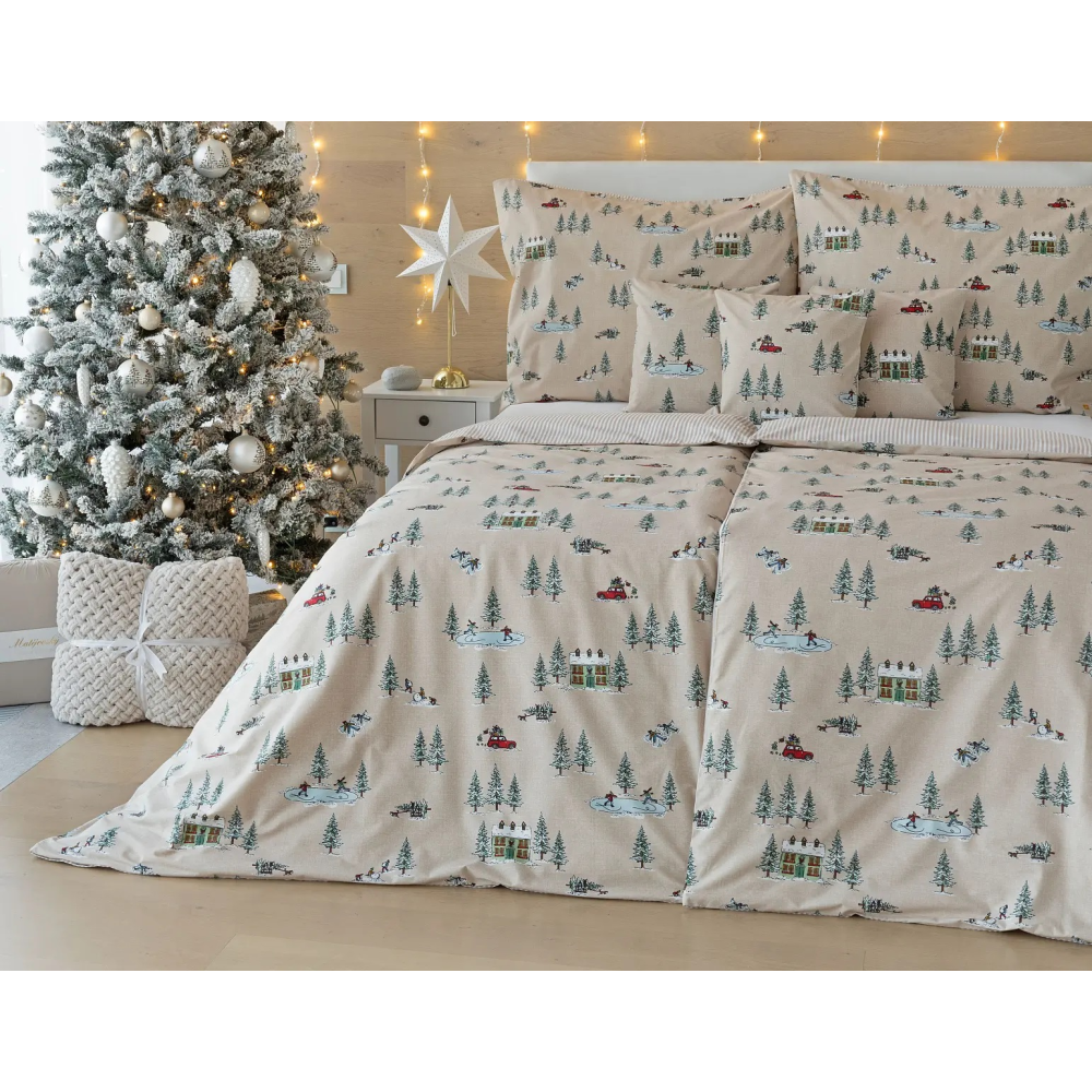 Hravý zimní vzor ložního povlečení Joel je skvělou inspirací pro celou domácnost. Jednoduchý motiv v neutrální kombinaci barev vynikne dobře na manželském lůžku i na posteli v dětském pokojíčku. Díky oblíbenému oboustrannému provedení, kdy spodní stranu povlečení tvoří decentní proužek v hnědo-bílém provedení, můžete při stlaní hravě kombinovat obě strany podle nálady.