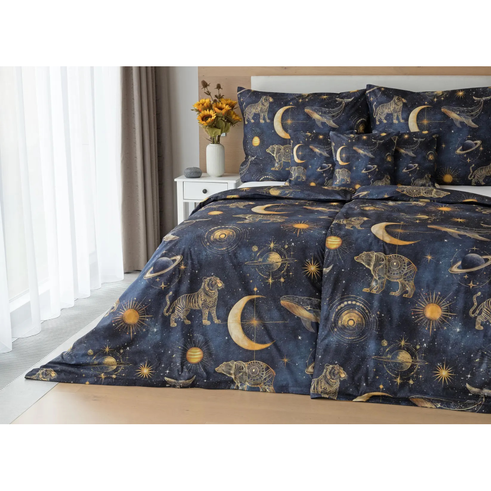 Objevte kouzlo nekonečného vesmíru přímo z pohodlí vlastní ložnice. Naše bavlněné povlečení Veloria s originálním galaktickým designem vytváří atmosféru klidu, dobrodružství a snění, která potěší děti, teenagery i dospělé milovníky tajemného kosmu. Díky preciznímu digitálnímu tisku si barvy uchovávají svou intenzitu i po opakovaném praní.