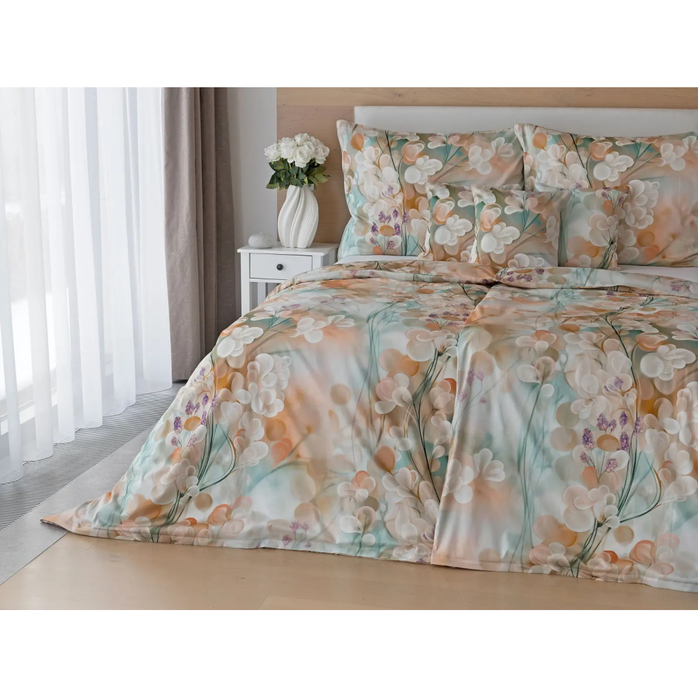 Vdechněte své ložnici svěžest a nadčasový vzhled s ložním povlečením Lunaris. Jemný florální motiv v harmonickém spojení krémových, oranžových a světle tyrkysových tónů působí vzdušně a stylově. Díky nejmodernějšímu digitálnímu tisku vyniká vzor v čistých liniích i jemných detailech. Hebký bavlněný satén dodává povlečení decentní lesk, který tomuto designu velmi sluší.