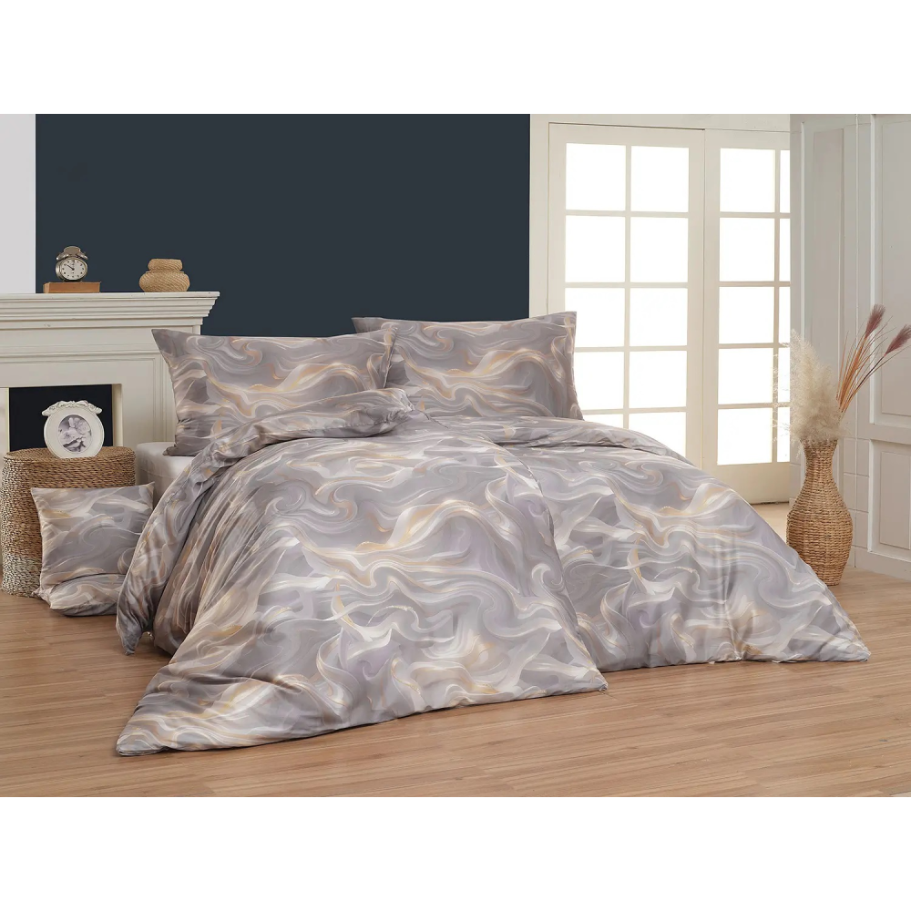 Zobrazit větší Elegantní ložní povlečení Lumen s jemným mramorovým vzorem vnese do vaší ložnice klid, harmonii a nadčasový styl. Decentní kombinace šedé s teplými zlatými akcenty snadno zapadne do moderního i klasického interiéru a vytvoří útulnou atmosféru pro dokonalý odpočinek. Plynulé linie připomínající přírodní kámen působí luxusně, ale zároveň velmi jemně a vzdušně.