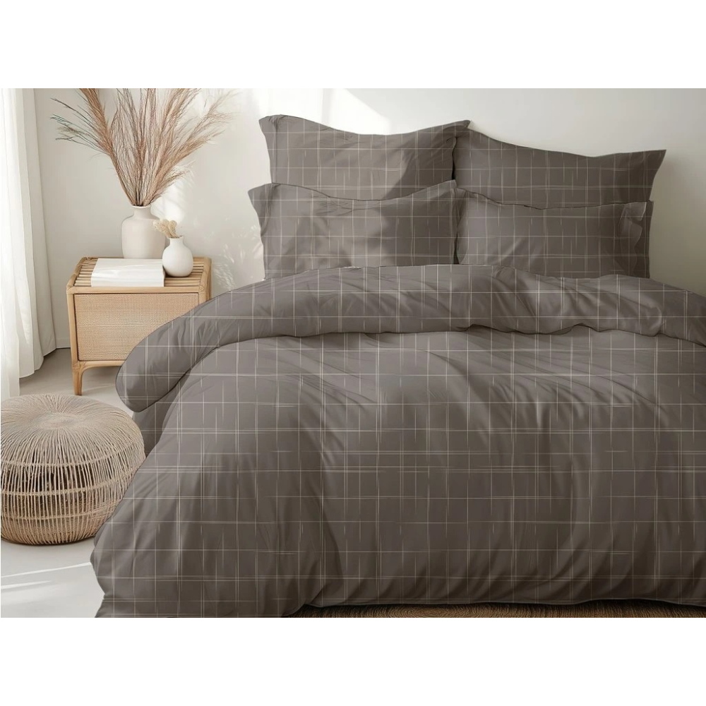 Elegantní ložní povlečení v hnědém odstínu s jemným károvaným vzorem působí nadčasově, klidně a velmi uhlazeně. Tenké, pravidelné linie vytvářejí decentní strukturu, která dodává povlečení sofistikovaný vzhled bez rušivého efektu.