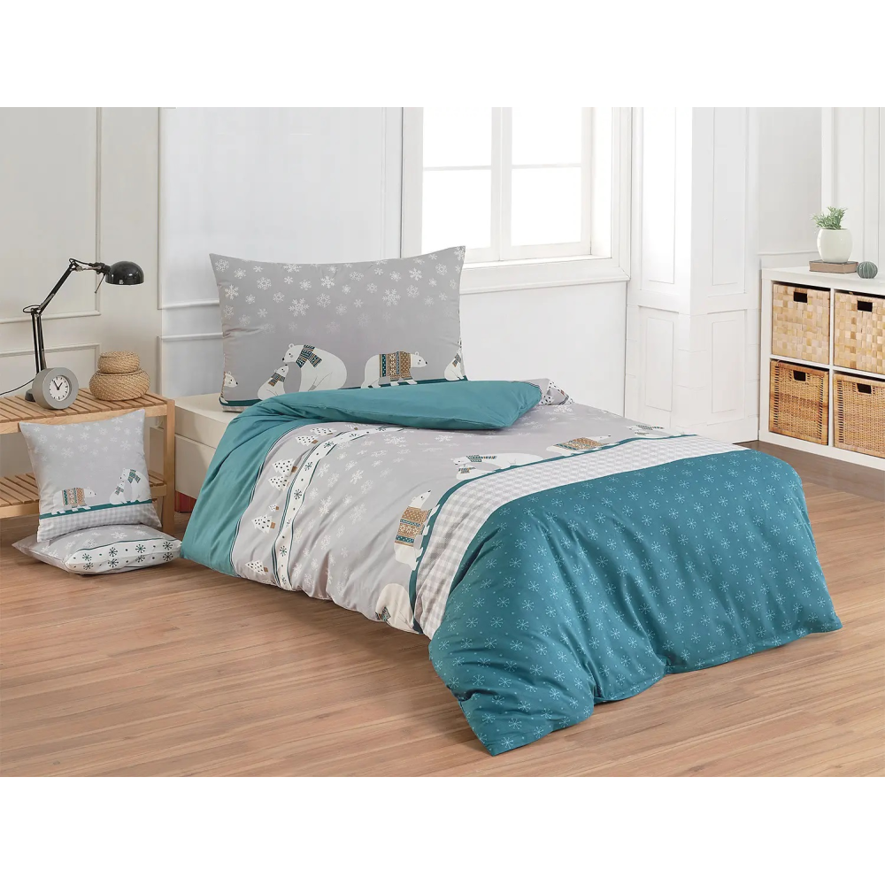 Povlak na polštář i na přikrývku je z obou stran stejný, vrchní stranu povlaku na polštář zdobí malé logo "M" v pravém dolním rohu. Povlečení je opatřeno komfortním zipovým uzávěrem.
