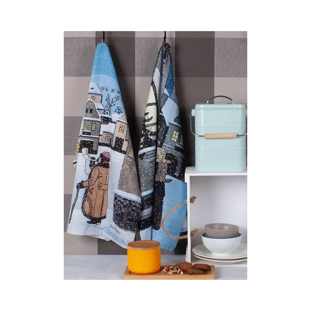 Kuchyňské utěrky Ladovská zima s motivy obrázků Okno se stromkem a Ponocný se díky nejmodernější digitální tiskové technologii pyšní nádhernými barvami a precizními detaily, které vykreslují autentickou ladovskou poetiku.