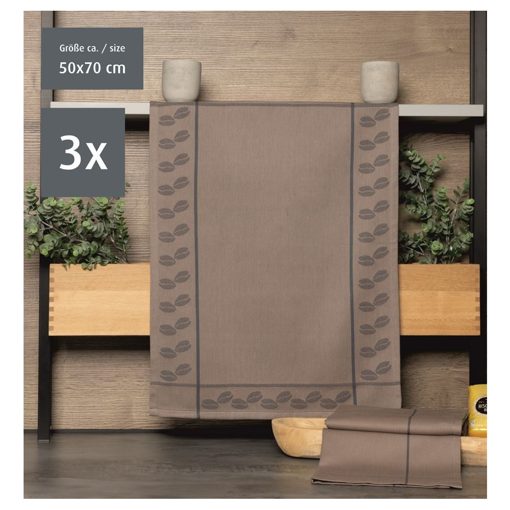 Kuchyňské žakárové utěrky s praktickým poutkem na zavěšení z česané příze.