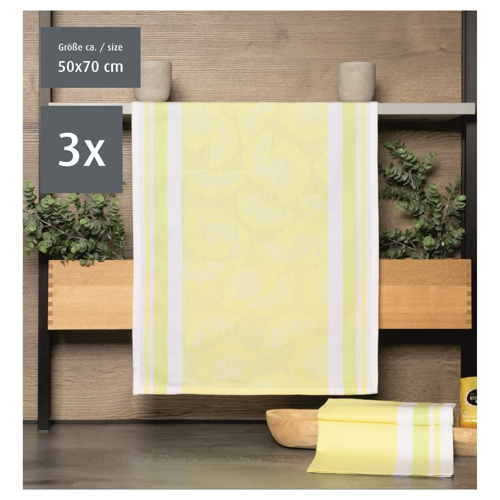 Kuchyňské žakárové utěrky s praktickým poutkem na zavěšení z česané příze.